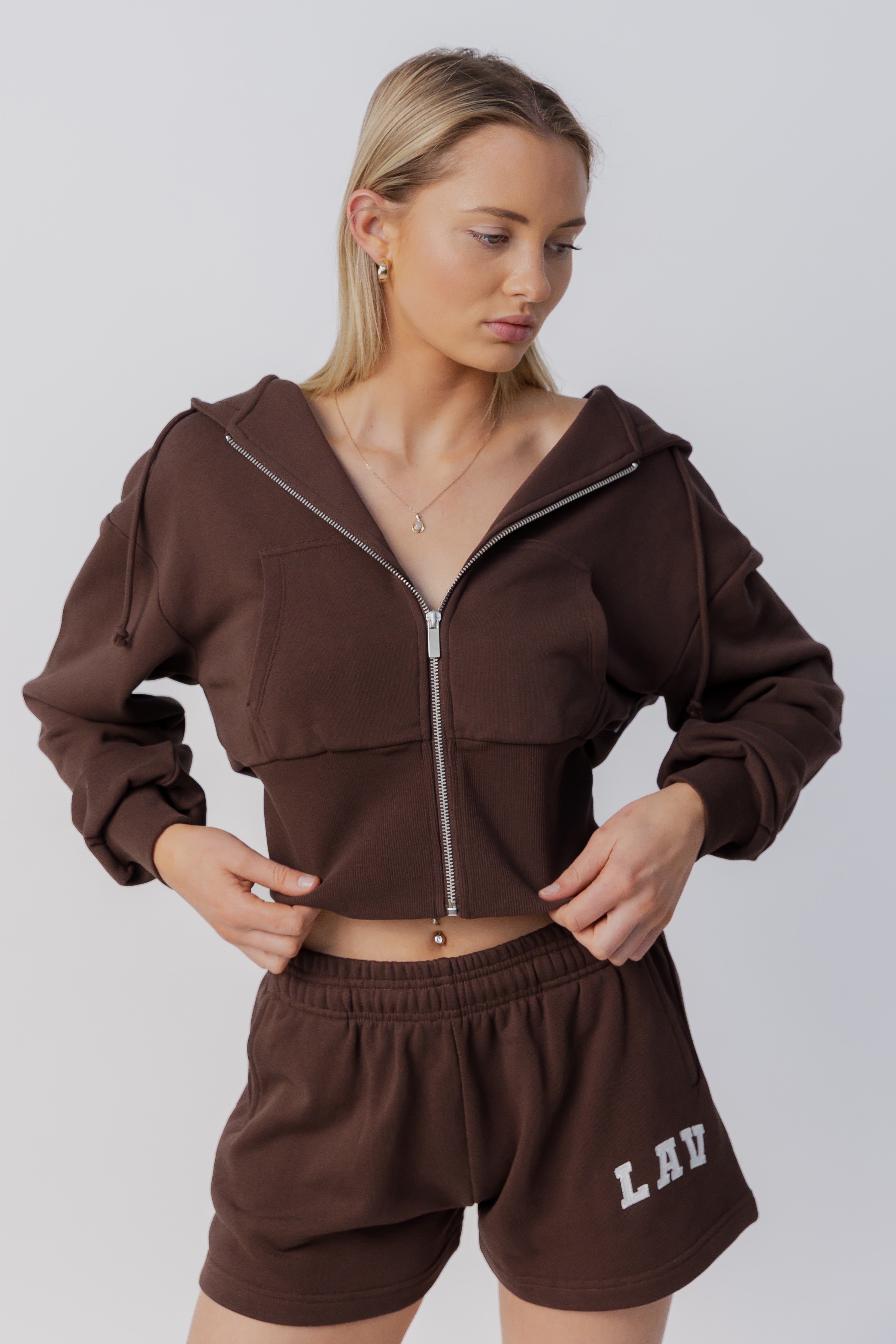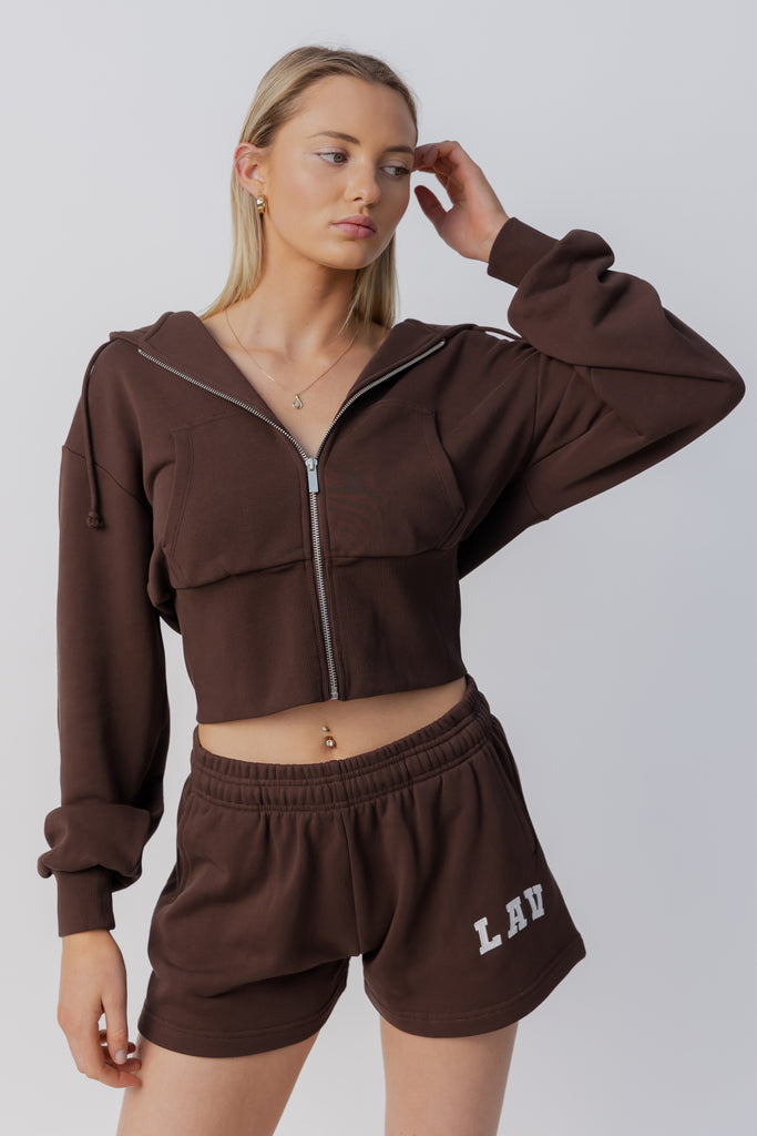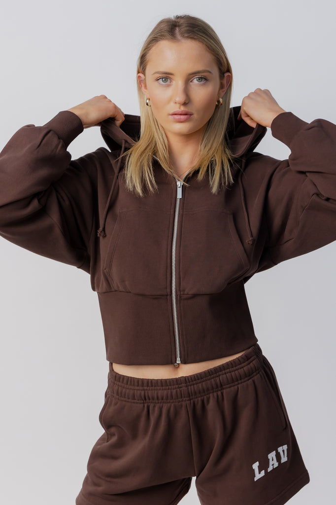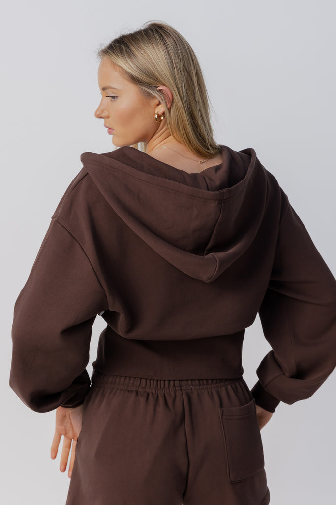 Cinched Zip Through Hoodie | Espresso