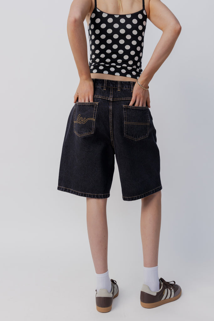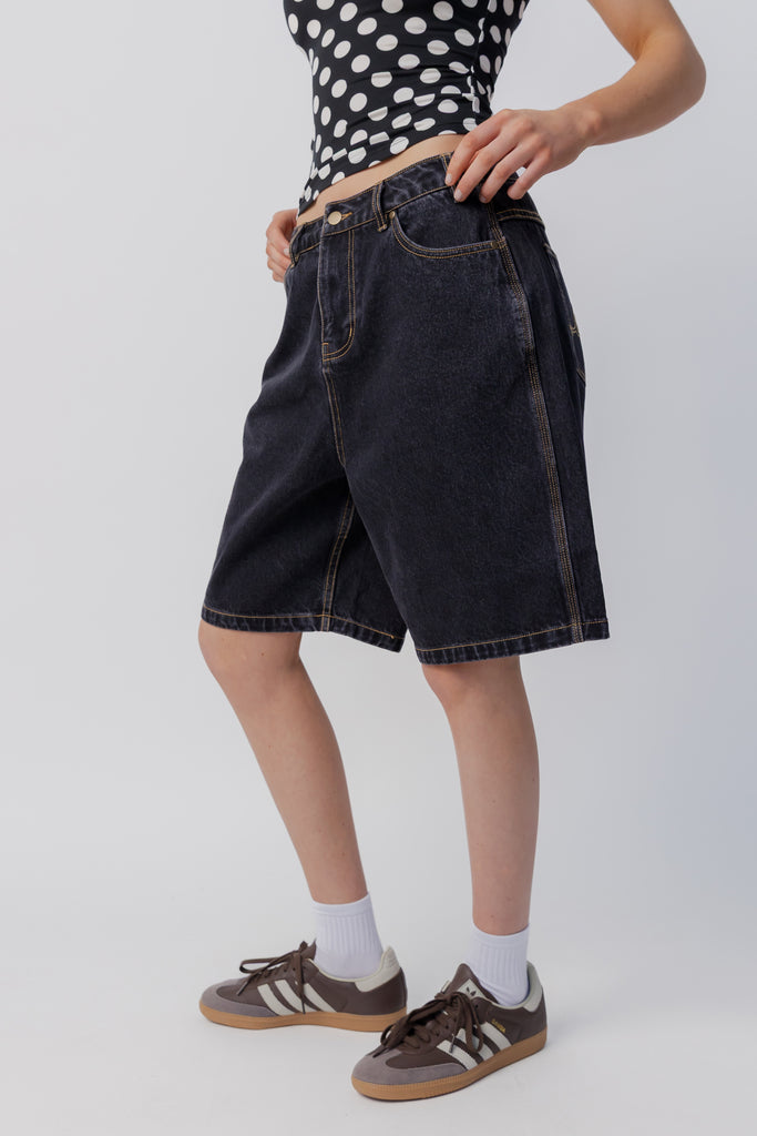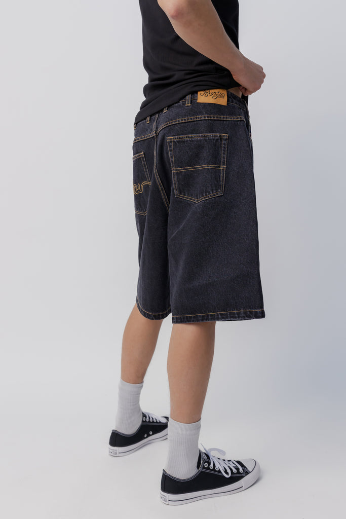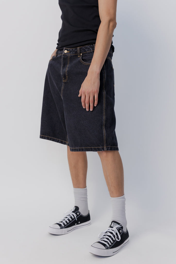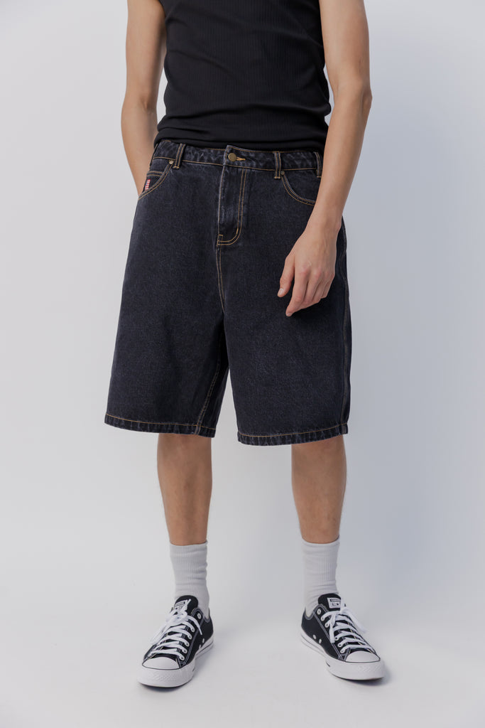 Baggy Denim Short | Washed Black