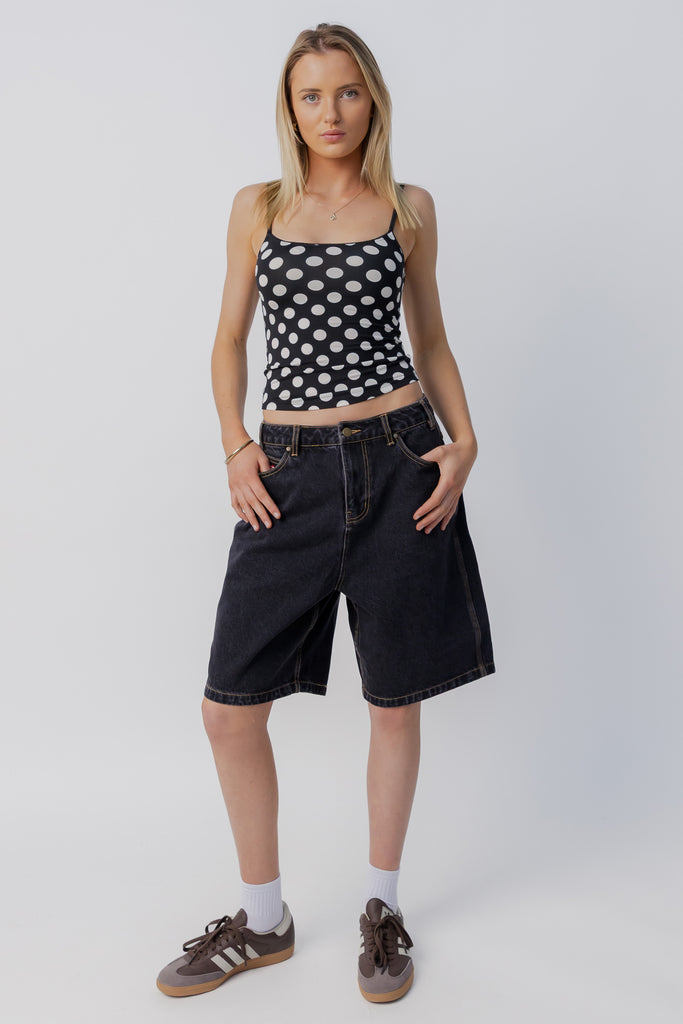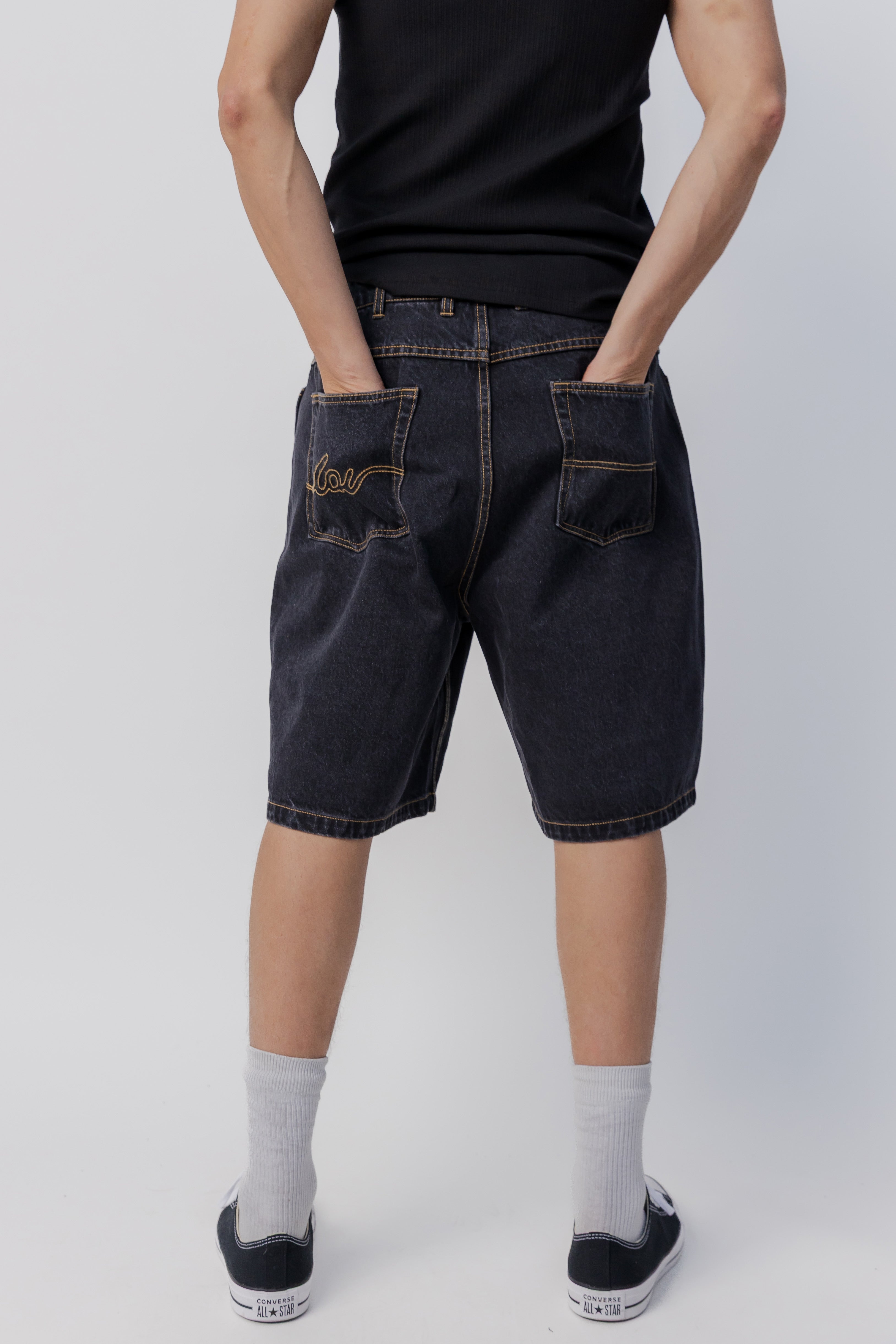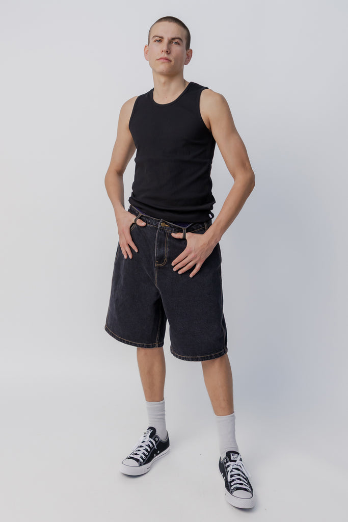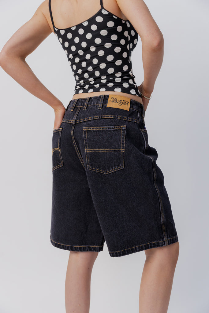 Baggy Denim Short | Washed Black